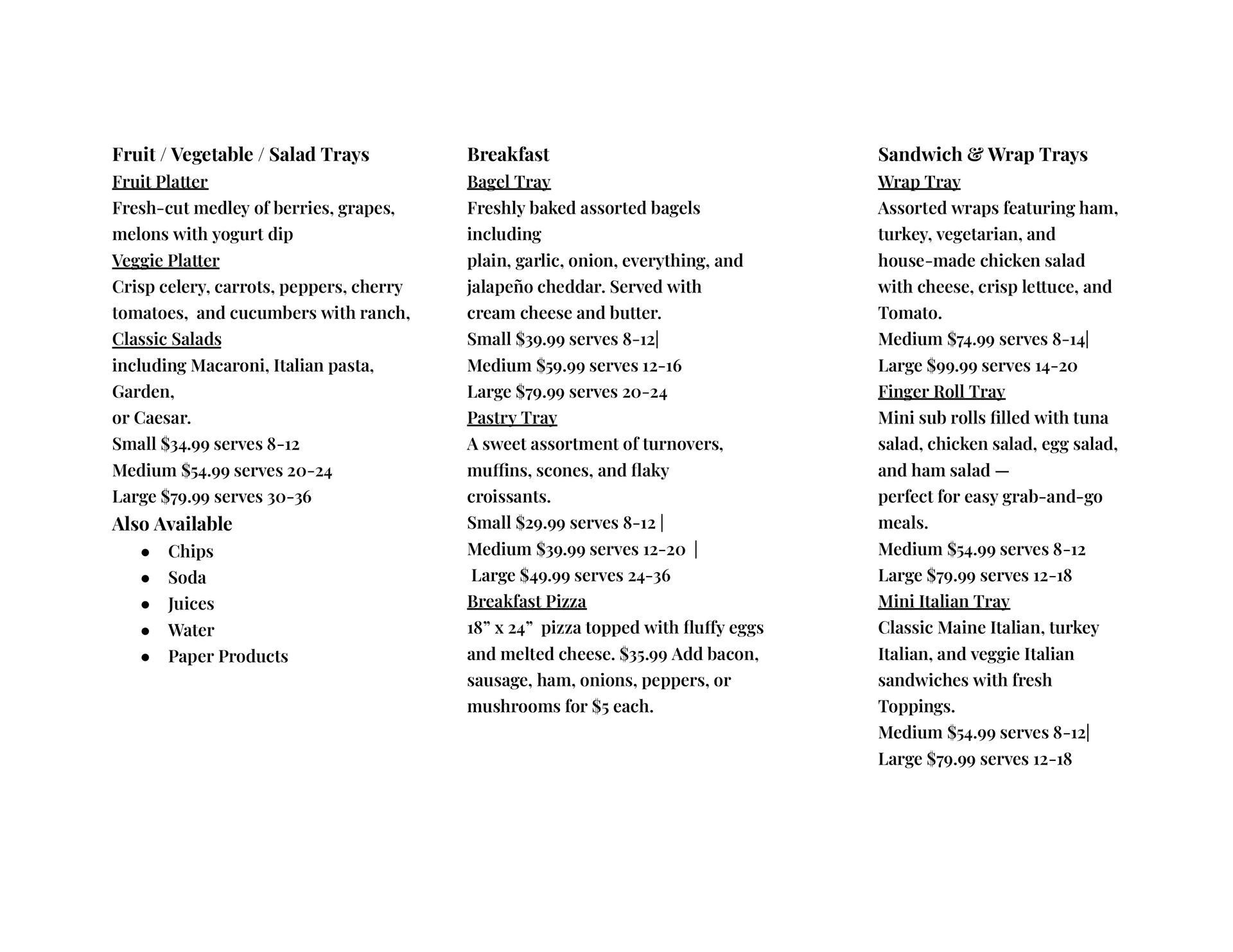 Catering Menu